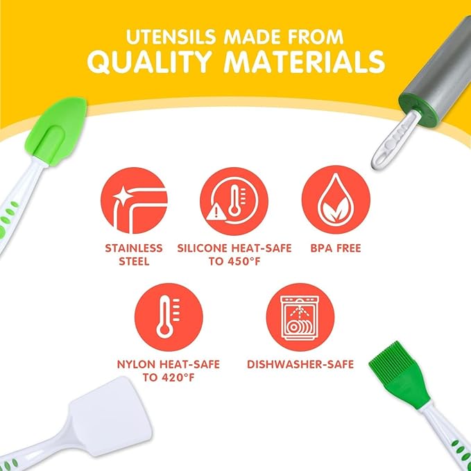 - KID-FRIENDLY DESIGN: This set is specially designed to provide an unforgettable cooking experience for your little ones. Each tool is meticulously crafted to fit comfortably and securely in their tiny hands, empowering them to become mini chefs in the making. With this set, they can truly lend a hand in the kitchen, recommended for ages 5+. Let your children's culinary creativity show as they go on a delightful cooking journey with this specially curated set.