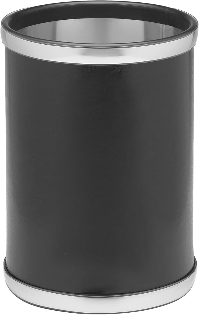 Kraftware Sophisticates Waste Basket with Brushed Chrome Round Band, Black - 10.75 Inch