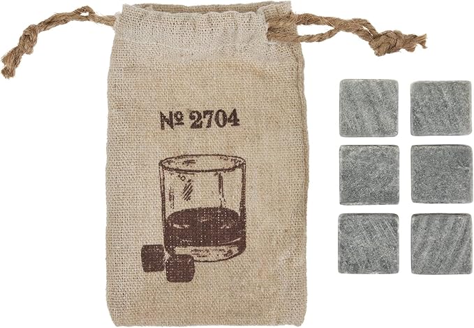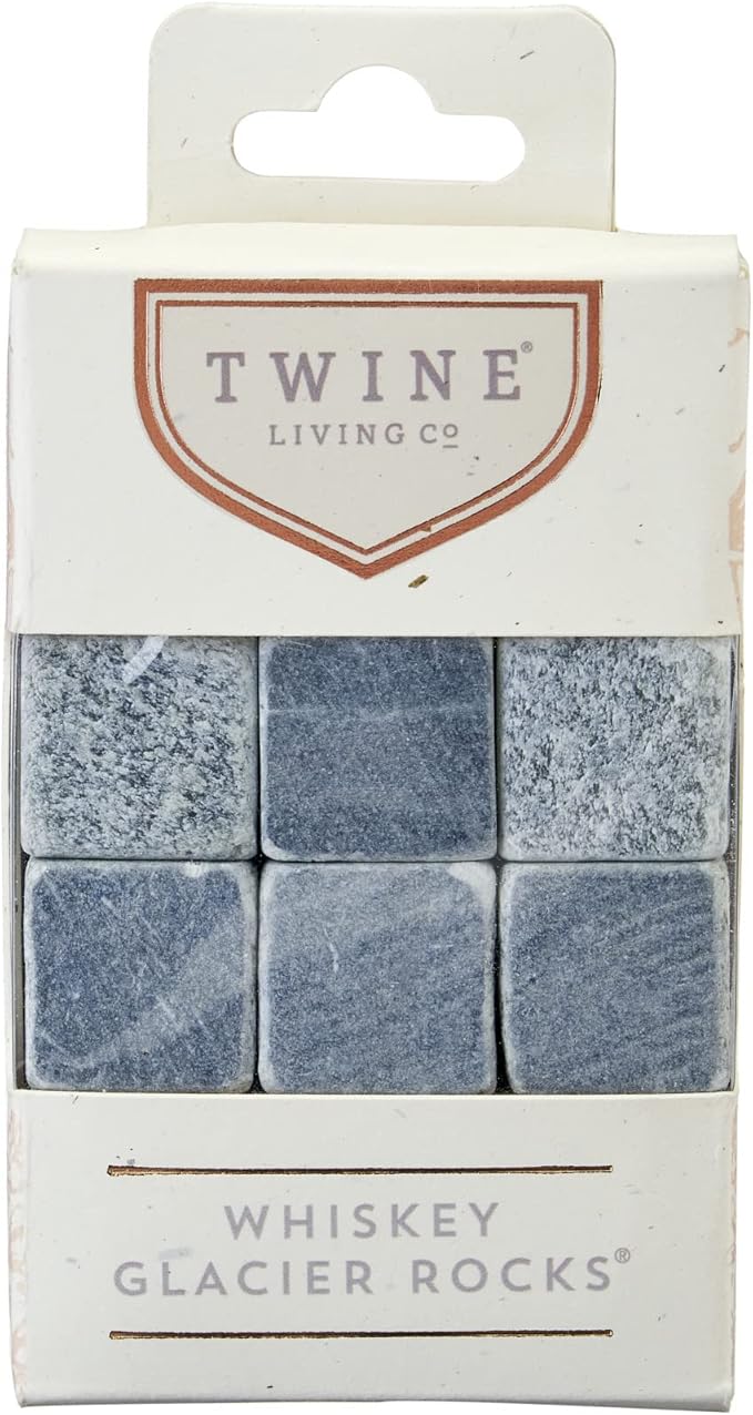 Twine Cooling Glacier Bourbon Rocks, Reusable Ice Cubes, Whiskey Stones Set, Barware, Accessories, Bar Tools, Set of 6, Grey, Soapstone
