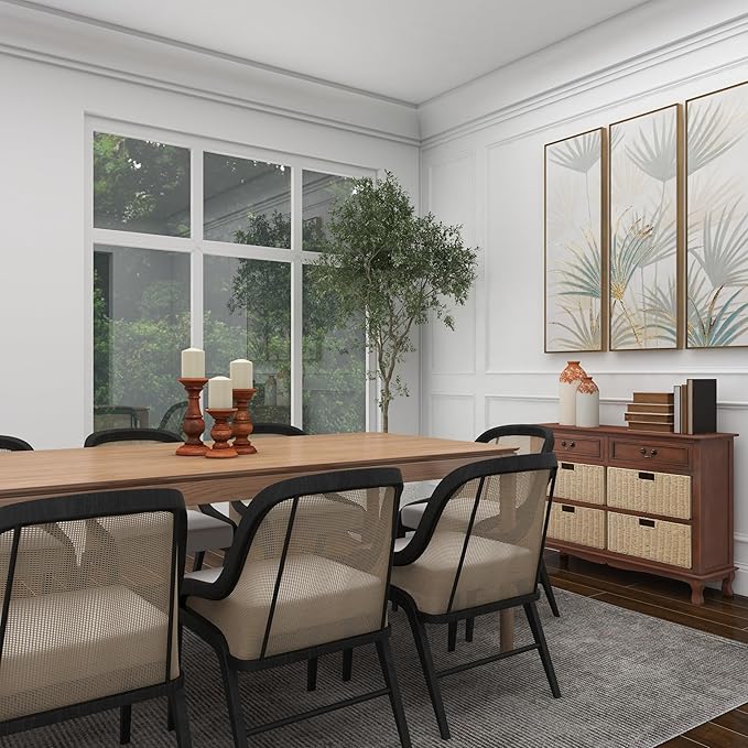 - Inspo Tips: This decorative candle holder set makes a great centerpiece on a Traditional style dining room; the natural mango wood construction brings an organic, earthy touch in any space; use colorful candles for stylish pops of color against the natural wood grain.