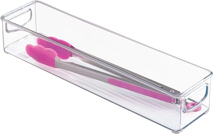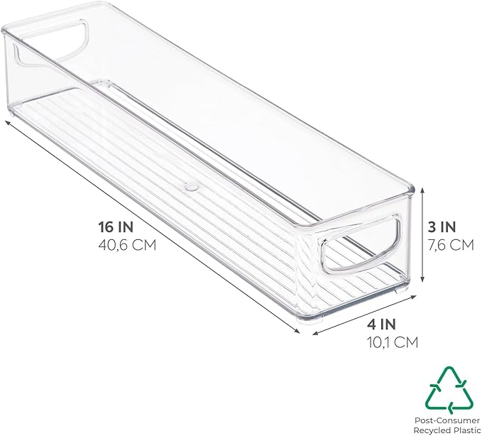 IDesign BPA-Free Plastic Pantry and Kitchen Storage, Freezer and Fridge Organizer Bin with Easy Grip Handles – 16" x 4" x 3", Clear