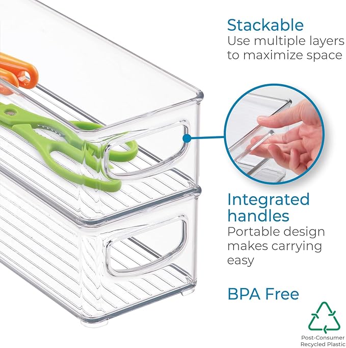 - BPA-FREE PLASTIC – Crafted from BPA-free plastic, the stackable storage bins stand up to everyday use; the transparent design allows you to easily view kitchen pantry storage contents at a glance; hand wash only