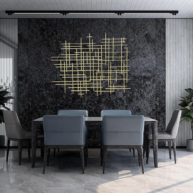 Bellaa 27079 Metal Wall Art Cross Geometric Abstract Modern Contemporary 3D Hanging Wrought Iron Minimalist Sculpture Living Room Outdoor Boho Farmhouse Home Decor Champagne Light Gold Large