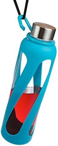 1, 2, 3, 4- PACKS - 20 oz Leak Proof, Reusable Pure Borosilicate Tempered Glass Water Bottle, Non-Slip Silicone Sleeve, 2 Attachments: Loop and Hook, Free of BPA, BPS, BPF, PVC, Phthalates