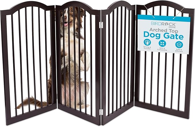 - VERSATILE PET GATE: This arched top pet gate offers a stylish and functional way to keep your pets secure. Its freestanding design allows you to easily set it up anywhere in your home, making it perfect for doorways, hallways, and stairs.