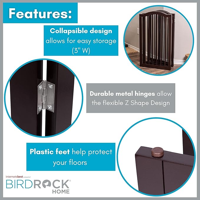 INTERNET'S BEST Arched Top Dog Gate | 4 Panel, 36" H Wooden Pet Barrier for Dogs or Cats | Freestanding Folding Room Divider for Doorways, Hallways, Stairs, and Porch | Portable, Extra Wide | Espresso
