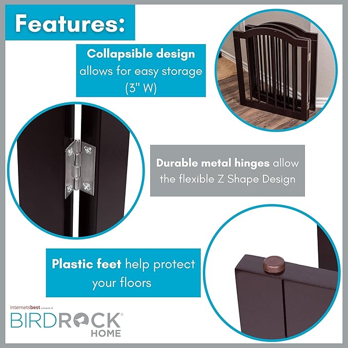 INTERNET'S BEST Arched Top Dog Gate | 4 Panel, 24" H Wooden Pet Barrier for Dogs or Cats | Freestanding Folding Room Divider for Doorways, Hallways, Stairs, and Porch | Portable, Extra Wide | Espresso
