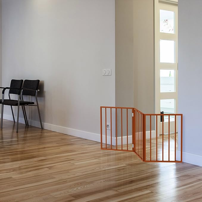 - FREESTANDING - Unlike traditional pet gates, this pet fence does not require installation that could potentially damage your home. With an accordion design, this tall dog gate is sturdy enough to barricade your small dog, puppy, or cat, without drilling.