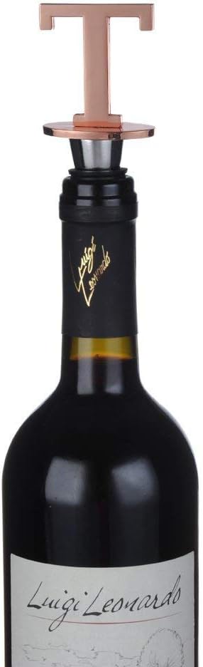 Miicol Wine Stoppers for Wine Bottles Toppers, Monogramm Cute Wine Accessories Gifts for Family Friends Women or Engagement Decorative, First Name Initial Letter T, Rose Gold