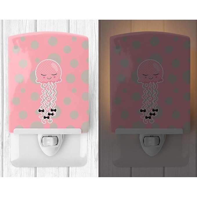 Caroline's Treasures BB8718CNL Jellyfish Ceramic Night Light Compact, UL-Certified, Ideal for Bedroom, Bathroom, Nursery, Hallway, Kitchen, 6x4x3, Multicolor