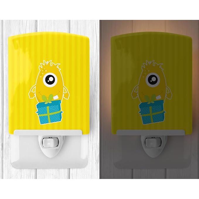 Caroline's Treasures BB9098CNL Birthday Monster with Present Ceramic Night Light Compact, UL-Certified, Ideal for Bedroom, Bathroom, Nursery, Hallway, Kitchen, 6x4x3, Multicolor