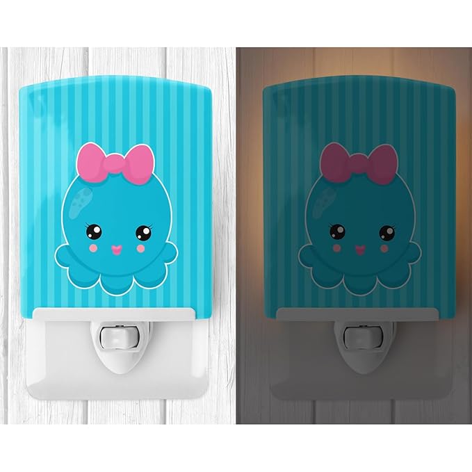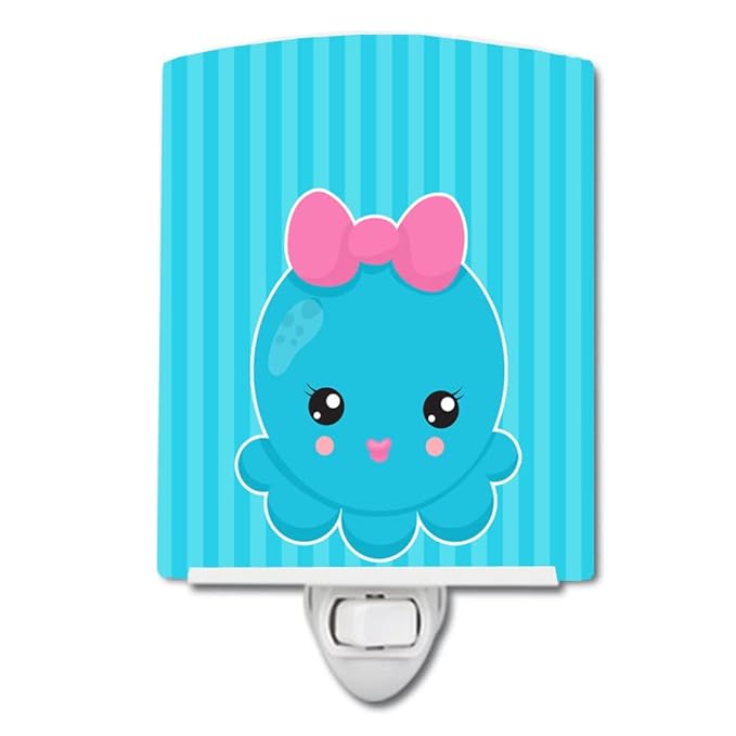 Caroline's Treasures BB8910CNL Nautical Blue Octopus Ceramic Night Light Compact, UL-Certified, Ideal for Bedroom, Bathroom, Nursery, Hallway, Kitchen, 6x4x3, Multicolor