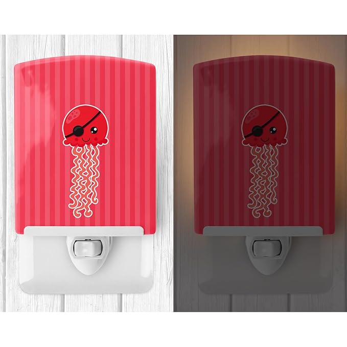 Caroline's Treasures BB8914CNL Nautical Pirate Jellyfish Red Ceramic Night Light Compact, UL-Certified, Ideal for Bedroom, Bathroom, Nursery, Hallway, Kitchen, 6x4x3, Multicolor