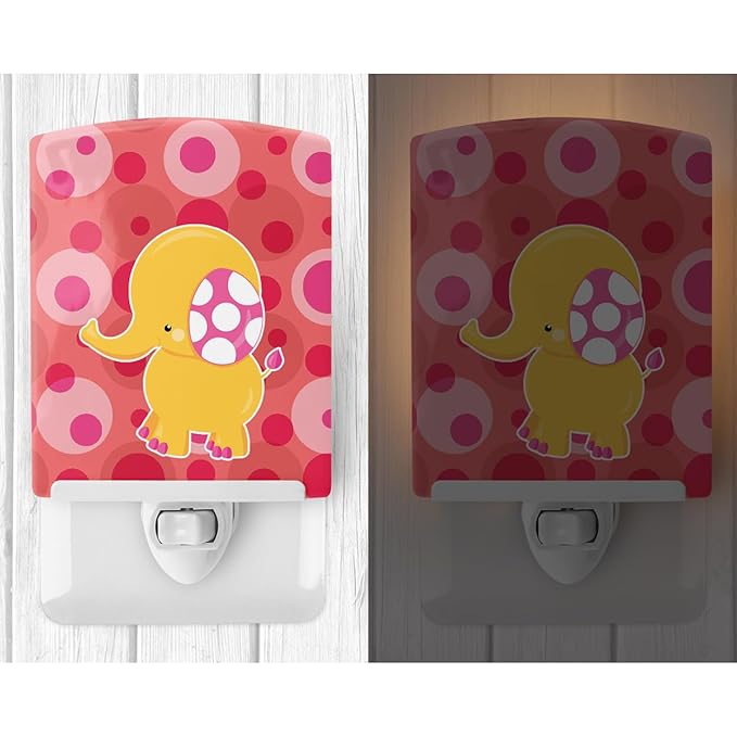 Caroline's Treasures BB6828CNL Girl Elephant Ceramic Night Light Compact, UL-Certified, Ideal for Bedroom, Bathroom, Nursery, Hallway, Kitchen, 6x4x3, Multicolor