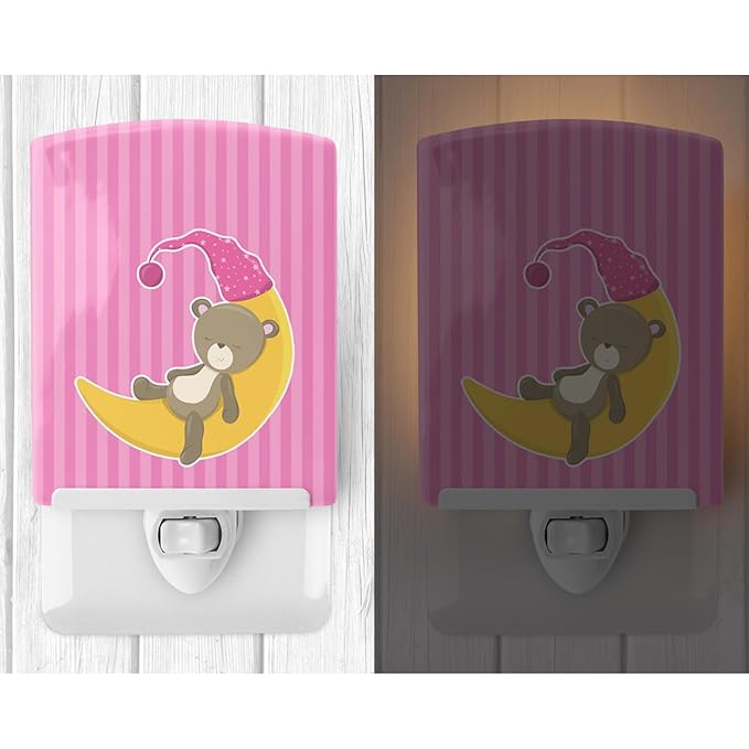 Caroline's Treasures BB8613CNL Baby Girl Bear on Moon Ceramic Night Light Compact, UL-Certified, Ideal for Bedroom, Bathroom, Nursery, Hallway, Kitchen, 6x4x3, Multicolor