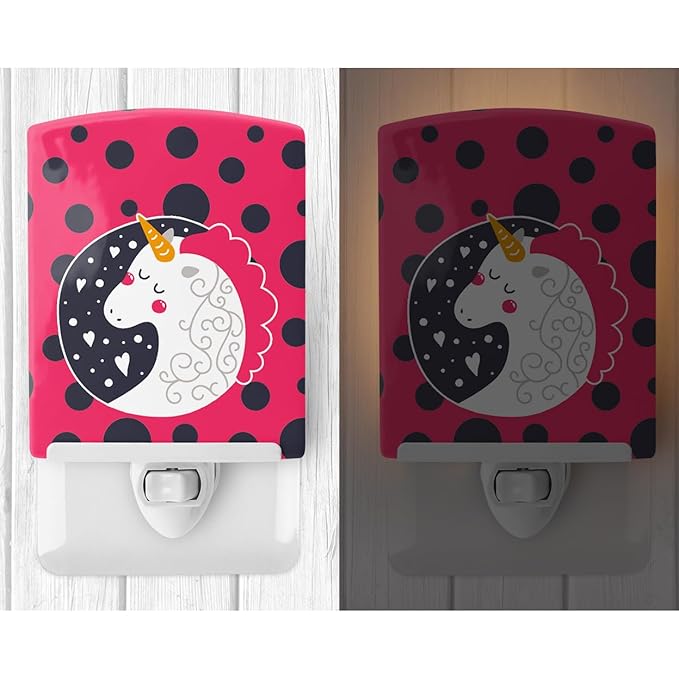 Caroline's Treasures BB7136CNL Unicorn Pink Polkadots Ceramic Night Light Compact, UL-Certified, Ideal for Bedroom, Bathroom, Nursery, Hallway, Kitchen, 6x4x3, Multicolor