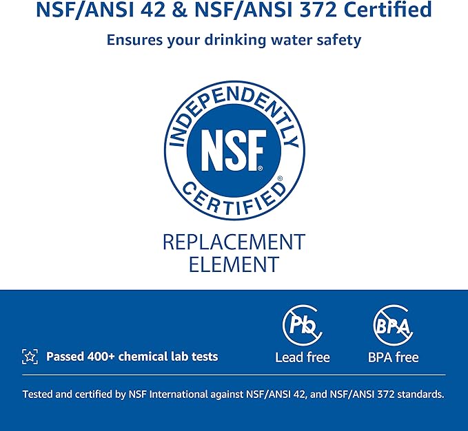 - NSF certified: This filter has been certified against NSF/ANSI 42 for the reduction of chlorine, bad taste and odor. The material used to make the Filterlogic filter meets NSF372 requirements for being free of lead.