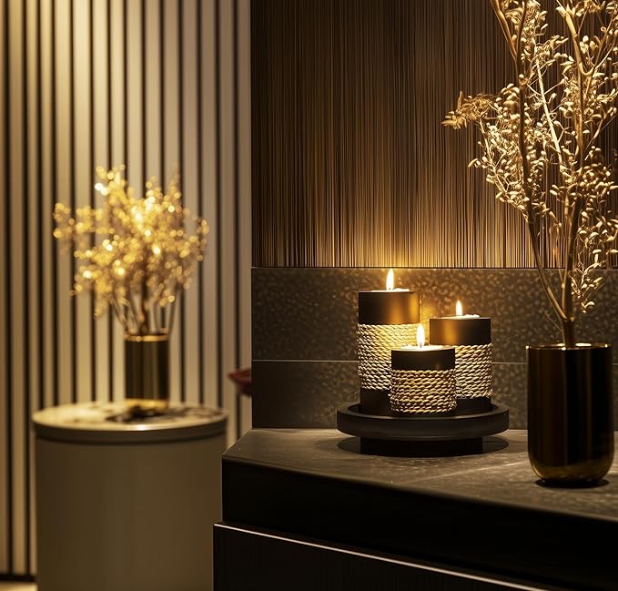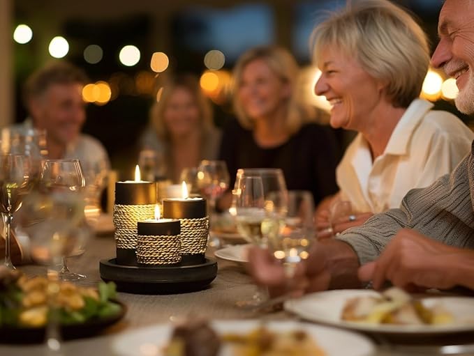- Elegant Rope Design Showcasing a refined combination of rustic rope and matte black wood, these candle holders bring a touch of artisanal charm to any space, perfect for dinner tables or cozy nooks.