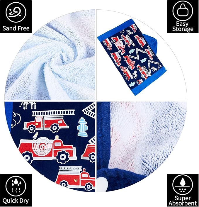 - 【Design & Theme】With buttons on front of the soft bath towel, adjustable and more convenient for kids to put on and off. Hooded design on beach towel to prevent children from catching cold. Fun themed designs and vibrant colors add even more fun for kids at the beach and in the bath.