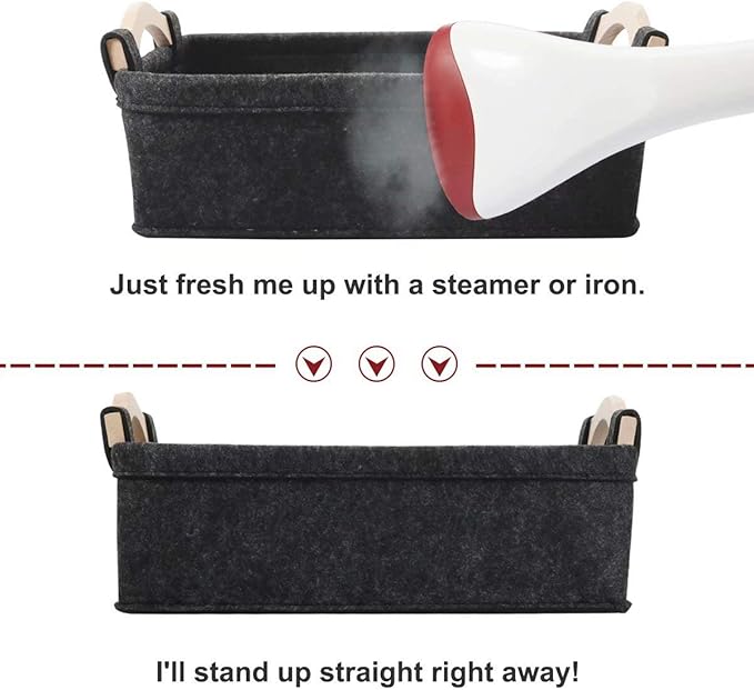 - Material: This Storage Basket made of felt with wooden handles that make this storage basket last long time. It is able to hold ton of stuffs , just say goodbye to messy.
