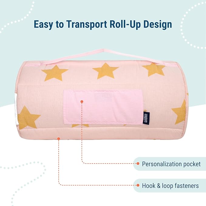 - TRAVEL-FRIENDLY DESIGN - Naptime can happen anywhere with Wildkin's daycare nap mat. Each travel-friendly design original kids napping mat features a roll-up design, complete with hook and loop fastening straps and a convenient carrying handle.