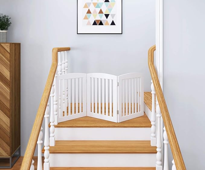 PAWLAND Wooden Freestanding Foldable Pet Gate for Dogs, 24 inch 3 Panels Step Over Fence, Dog Gate for The House, Doorway, Stairs, Extra Wide (White, 24" Height-3 Panels)