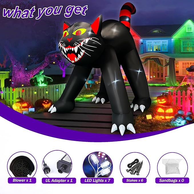 - GREAT FOR FESTIVAL:14 Ft Giant Halloween Inflatable Black Cat perfect for halloween decor. Will add fun and color to your halloween and welcome your lovely neighbors