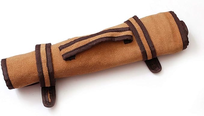 - damascus steel kitchen knife set, with genuine leather carry roll bag. stainless steel bolster, Handle scale pukka wood and bone combination. A solid knife