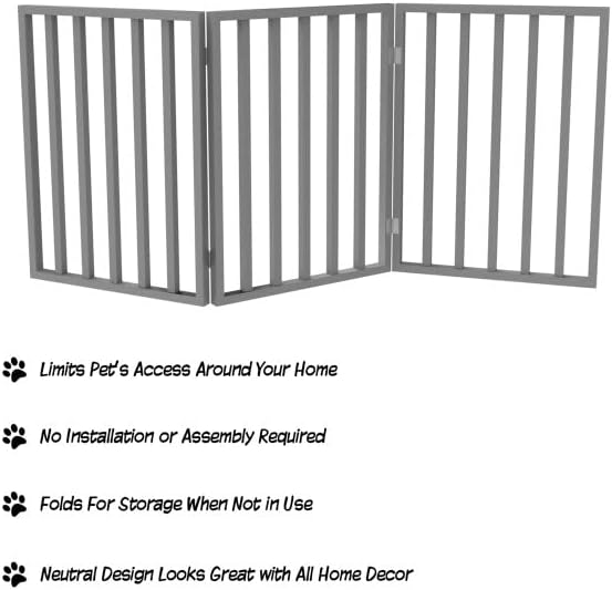 Pet Gate - 3-Panel Indoor Foldable Dog Fence for Stairs, Hallways, or Doorways - 54x24-Inch Retractable Wood Freestanding Dog Gates by PETMAKER (Gray)