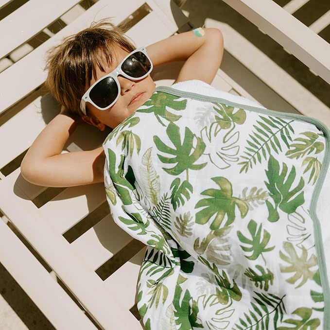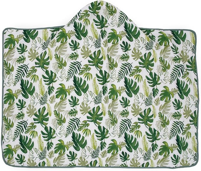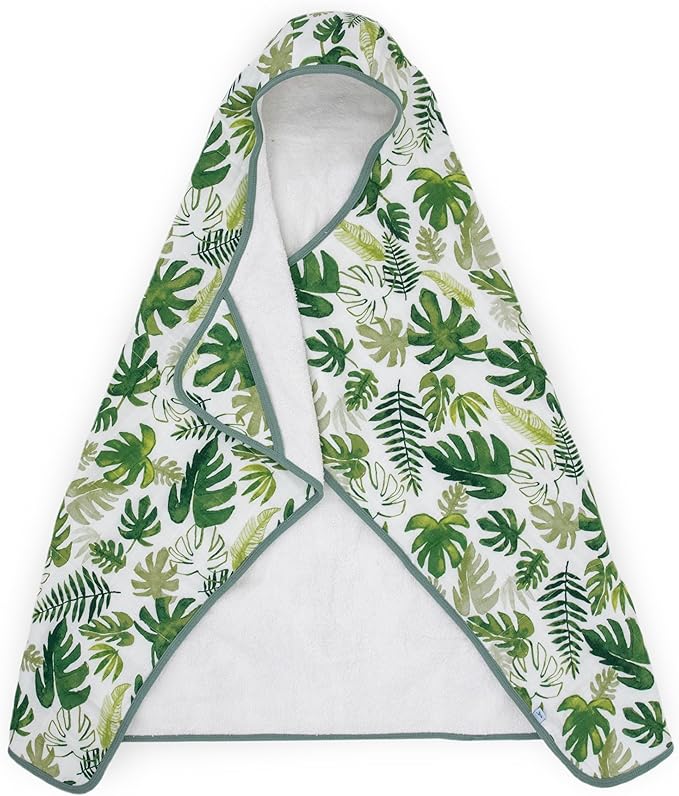 Little Unicorn Cotton Muslin & Terry Hooded Towel, Larger Size 1-6 Years (Tropical Leaf)