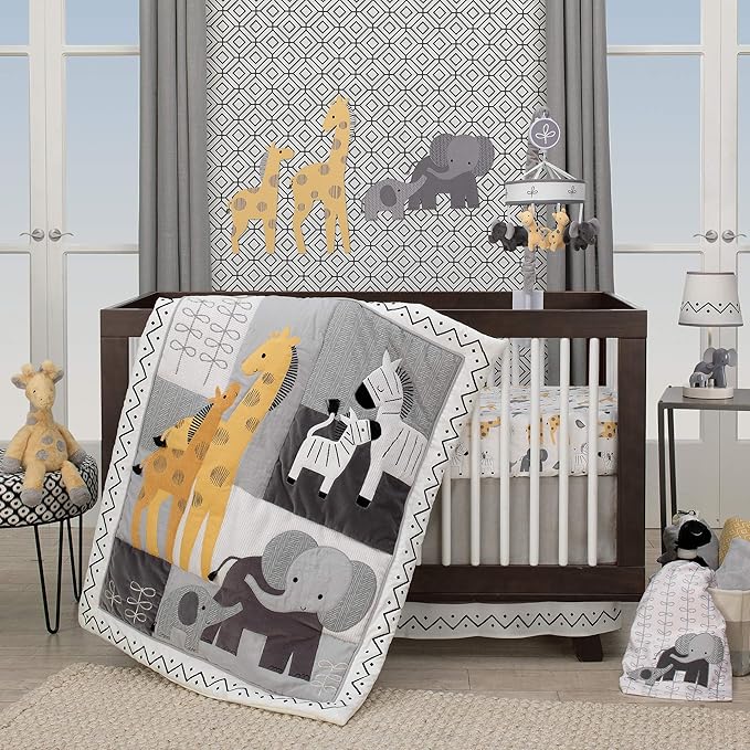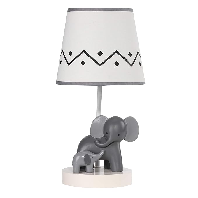Lambs & Ivy Me & Mama White/Gray Elephant Nursery Lamp with Shade & Bulb