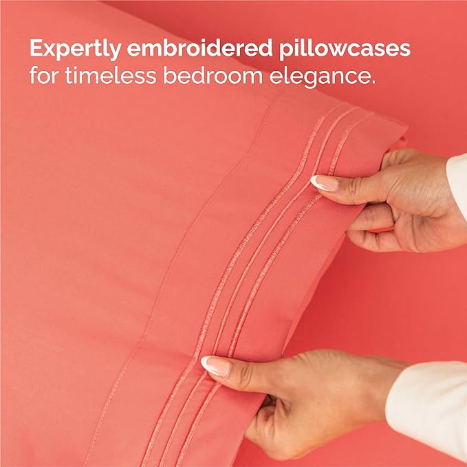 King Size 4 Piece Sheet Set - Comfy Breathable & Cooling Bed Sheets Set - Hotel Luxury Bedding for Women, Men, Kids, Teens, Boys & Girls - Deep Pockets, Ultra-Soft and Wrinkle Free - Oeko-Tex - Coral