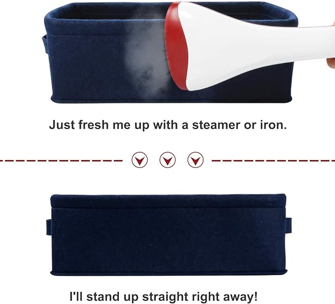 - Felt Handles and Stylish Storage: The strengthen felt handles on both sides for easy slide in and pull out of shelves or closet.Feel free to fold. These soft storage organizers keep closet and bedroom clutter under control while keeping clothing and other accessories in an easily accessible location.