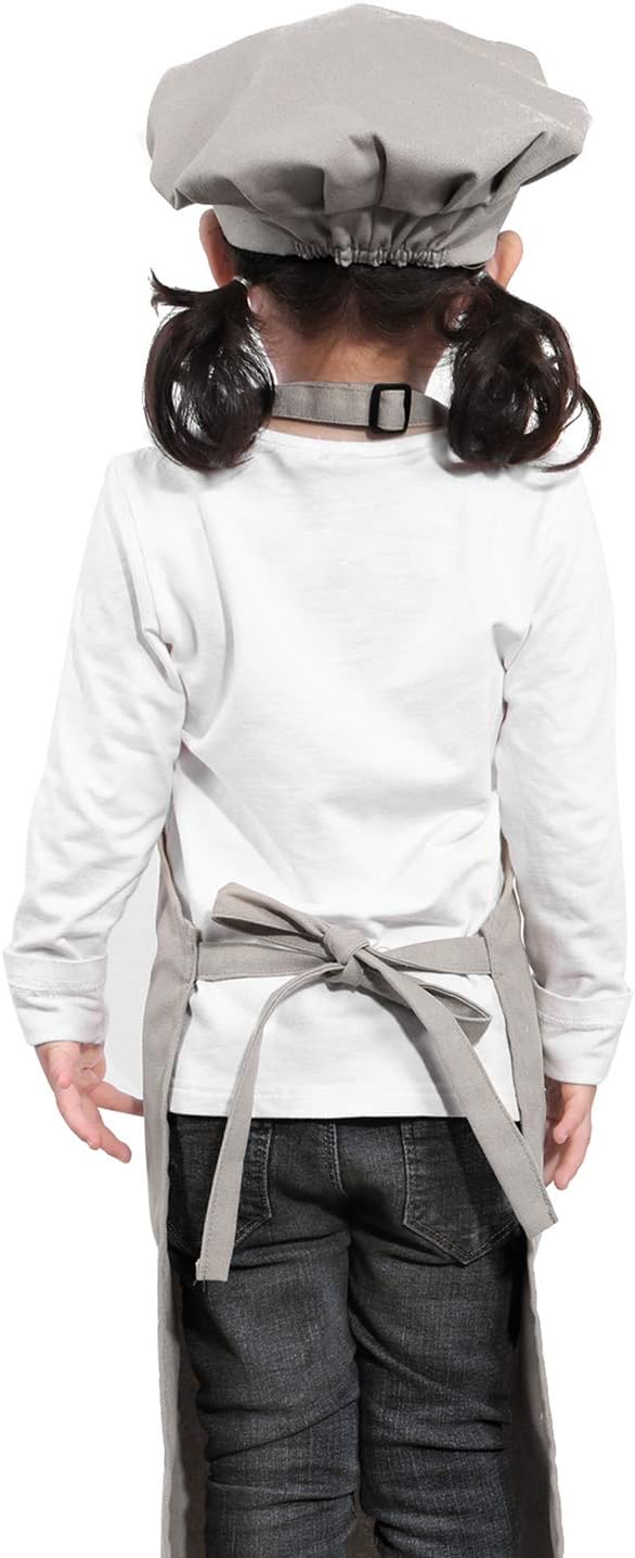 Kids Apron and Chef Hat Set-Adjustable Child Apron for Boys and Girls for Cooking Baking Light Gray