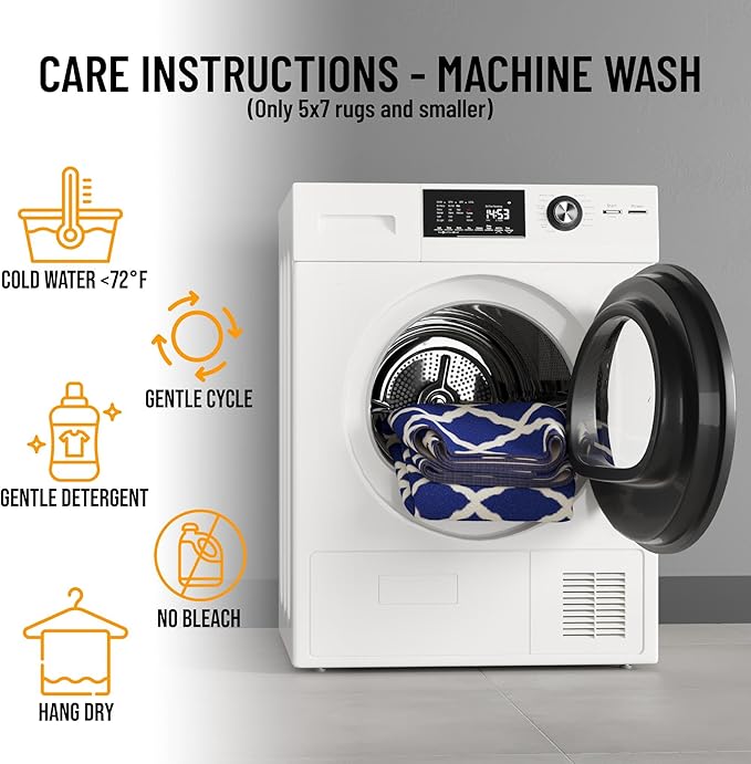 - [TRENDY STYLE]: This Colorful Moroccan Trellis Design Area Rug features a tasteful moroccan trellis design with white motifs on a deep navy background while also adding color and enhancing the look of your home