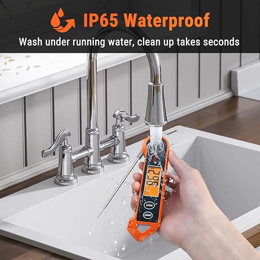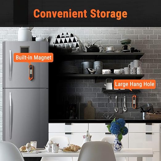 - IP65 Waterproof & Convenient Storage: Quickly clean the meat thermometers for grilling with probe under running water; features a magnetic back to allow for placement on any metal surface or use the hang hole for hooks