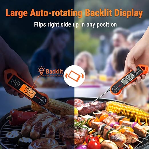 - 2.0 inches large auto-rotating backlit display: Candy thermometer has a 180° auto-rotating backlit display, making this kitchen thermometer perfect for left-hand users and allows you to use it in low light conditions