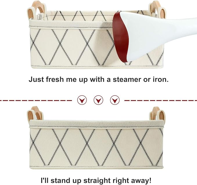 - CARE TIP: Our foldable baskets can be steam ironed or stuffed with towels to get rid of wrinkles. These are easy to clean, just dust with a dry cloth, or spot clean with light soapy water when necessary.