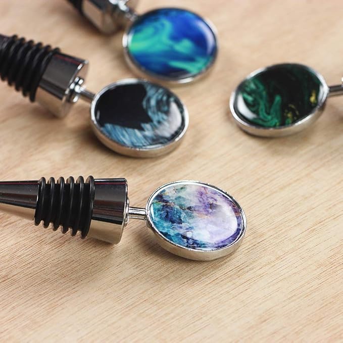LIZIMANDU Wine Bottle Stoppers,Set of 4 Stainless Steel Wine Stoppers For Gifts, Bar, Holiday Party, Wedding(4-Quicksand Scenery)