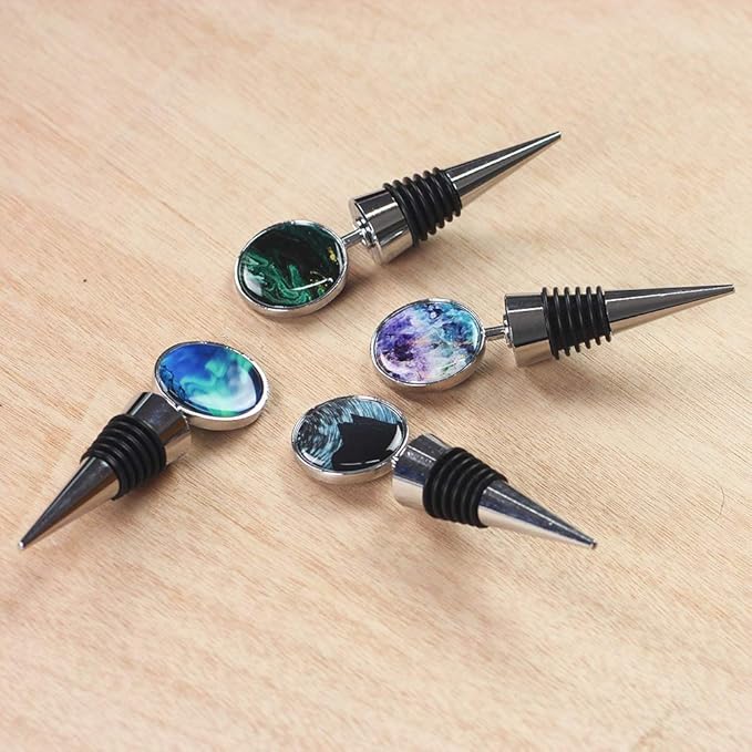 - Wine bottle stoppers feature a round shaped of topper with some designs, a plated shaft and flexible rubber gaskets,different patterns that is a great way to help you or your guest spot which bottle is which on the party or gathering.