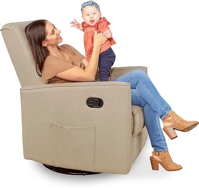 Evolur Raleigh Upholstered Plush Seating Glider Swivel, Rocker, Recliner, Glider for Nursery in Fawn, Greenguard Gold Certified, Modern Nursery Recliner, Environmentally Conscious Glider