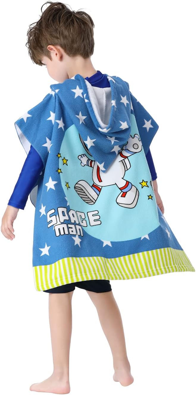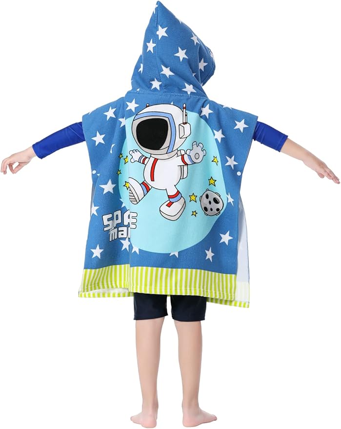 Kids' Wearable Hooded Beach Towel, Toddlers Bath Pool Swim Poncho Cover-ups Swimwear (ASTRONAUT)