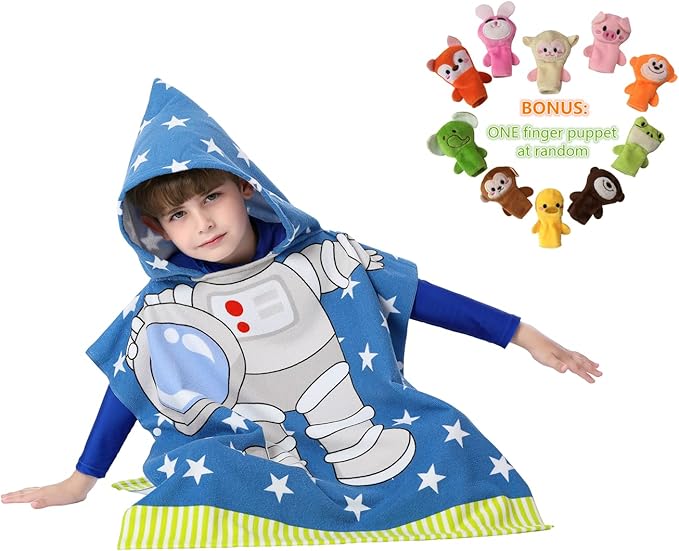 - 💚 WEWEARABLE PULLOVER DESIGN: Easy to open and close snaps design, let children free hands, never be worry about the towel slipping off anymore, increase warmth and comfort.