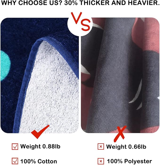 - 【Premium Material 100% Cotton 】Wowelife bath towel is made of 100% cotton, the quick dry beach towel is soft and breathable. Children with delicate skin can also be used with complete confidence. High quality fabric increases the durability of the toddler bath towel. Fade-resistant & no lint, eco-friendly material of UPF50+ rating and national 4.0-8.5 standard.