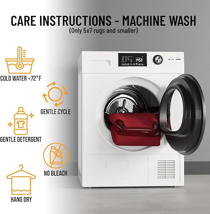 - Care Instructions: Vacuum regularly and spot clean with damp cloth, DO NOT machine wash. DO NOT use strong liquid cleaners or hot water.