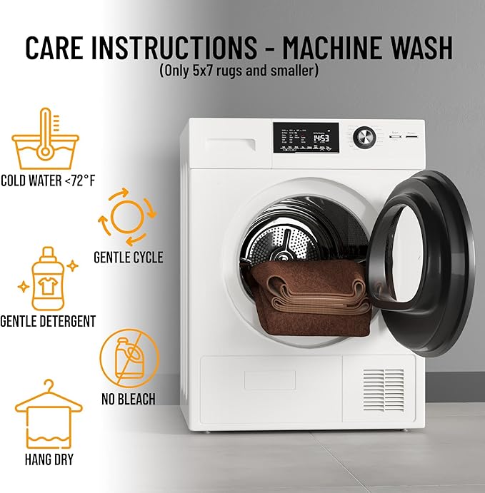 - [EASY CARE]: Stress free cleaning includes regular vacuuming (no brushes/rollers) and gently spot cleaning out minor stains with mild detergent or carpet cleaner. Creases and curling should flatten with 5-7 days of regular use. To expedite this process, reverse roll the corner with the crease and gently apply pressure.
