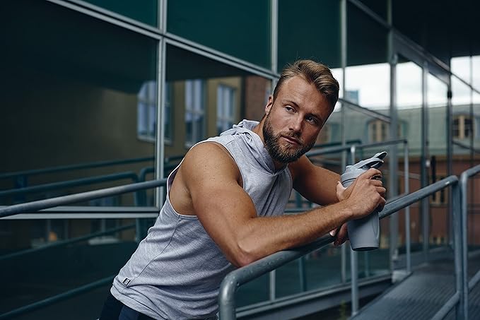 - SHAKE IT UP IN STYLE with this sleek yet sturdy protein shaker bottle. Clean minimalist design with a soft silicone base, screw-on shock-absorbing lid and smooth, matte grey powder-coated finish for a non-slip grip