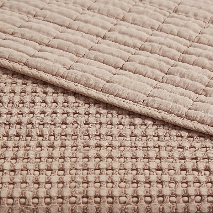 - Timeless Waffle Texture. This quilt king size bedding set features a classic waffle weave on the front for a tactile, textural look, backed with a smooth coordinating microfiber fabric. Designed to bring tactile dimension and understated elegance to your space—ideal for contemporary, coastal, or minimalist bedrooms.