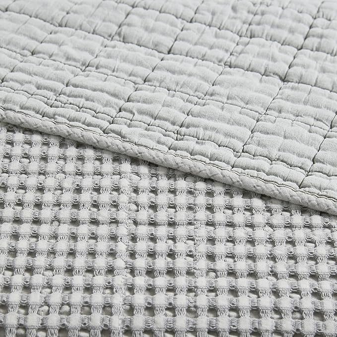 Levtex Home Mills Waffle Full/Queen Quilt Set (88x92in) with 2 Pillow Shams (26x20in) - Grey - Cotton Waffle Full/Queen Size Quilt Bedding Set - Lightweight, Soft, Pre-Washed