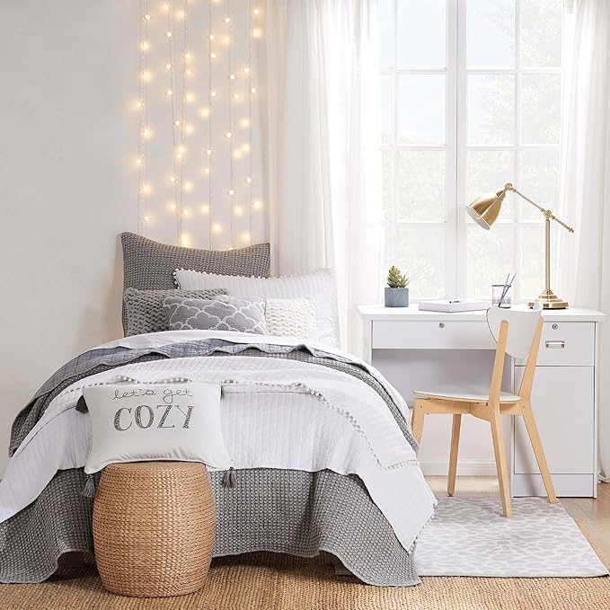 - Complete Bedding Set. The Levtex Home Mills Waffle Twin / Twin XL Quilt Set includes a 68x86 inch quilt and one standard sham (26x20). Crafted with a 100% cotton waffle front and a soft microfiber back, this lightweight twin quilt bedding set is designed for all-season comfort. Ideal for kids’ rooms, dorms, guest spaces, or cozy nooks, and perfect for solo sleepers, students, or weekend visitors. Available in multiple colors.